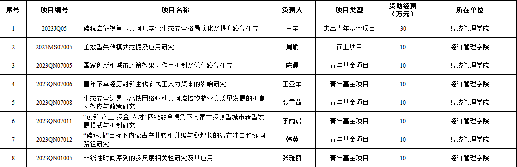 近日,自治区科学技术厅下发《关于批准资助2023年度内蒙古自治区自然科学基金项目的通知》的通知,我院共有8个项目获准立项,获批经费100万元。自然科学基金项目数及资助金额创历史新高。其中杰出青年基金项目1项,面上项目1项、青年基金项目6项。