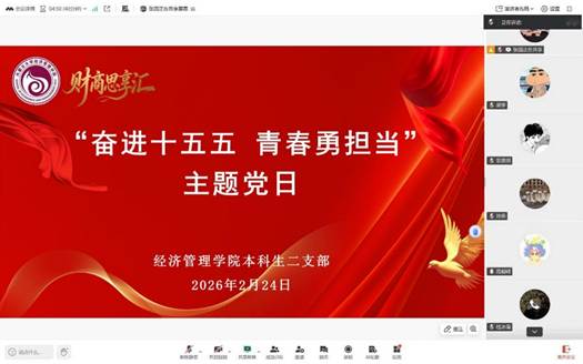 为持续深化理论学习成效,深刻领悟“十五五”规划核心要义,强化青年使命担当,2026年2月24日下午,yl7703永利集团本科生二支部以线上形式组织开展了2月份主题党日。本次活动以支部书记讲党课的形式开展,支部书记周毅嵘领学,支部全体党员参加。