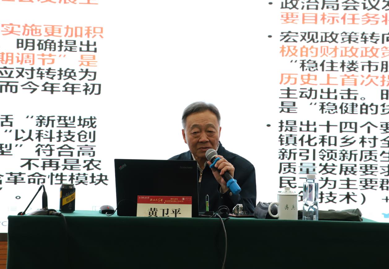 中国人民大学经济学院原院长黄卫平教授作了“2025年两会精神与数字经济发展趋势”的专题报告,并同与会师生进行了互动交流。
