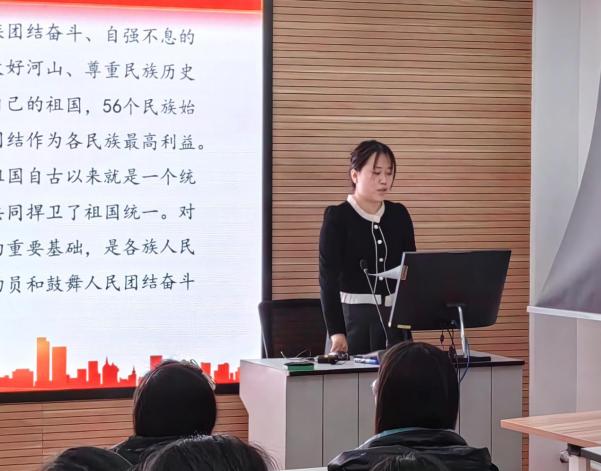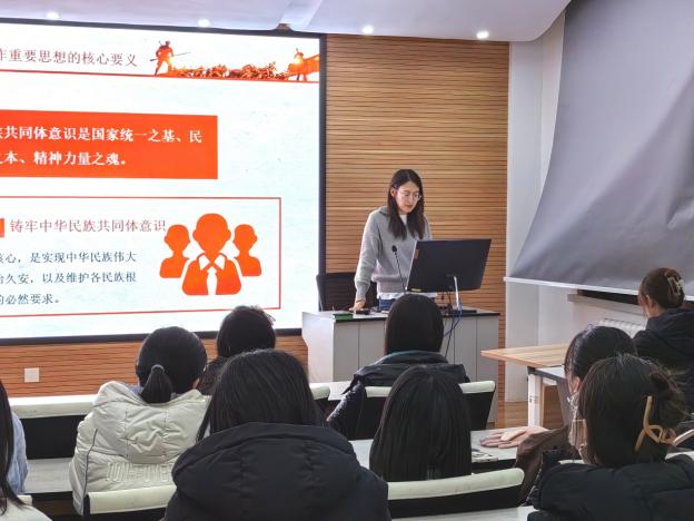 会上,李安琪老师围绕“铸牢中华民族共同体意识”主题,结合习近平总书记重要讲话精神,带领支部成员详细学习了有关加强和改进民族工作重要思想的精神实质、核心要义以及理论价值。此外,本次学习活动还邀请到了学院铸牢中华民族共同体意识宣讲团成员杨伊萌作为主讲人,为支部成员详细介绍了中华民族共同体意识的提出过程、主要含义以及重大意义等。通过学习,支部党员对习近平总书记关于加强和改进民族工作的重要思想以及铸牢中华民族共同体意识都有了更深的认识和理解。