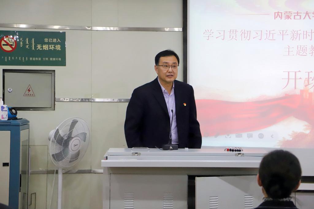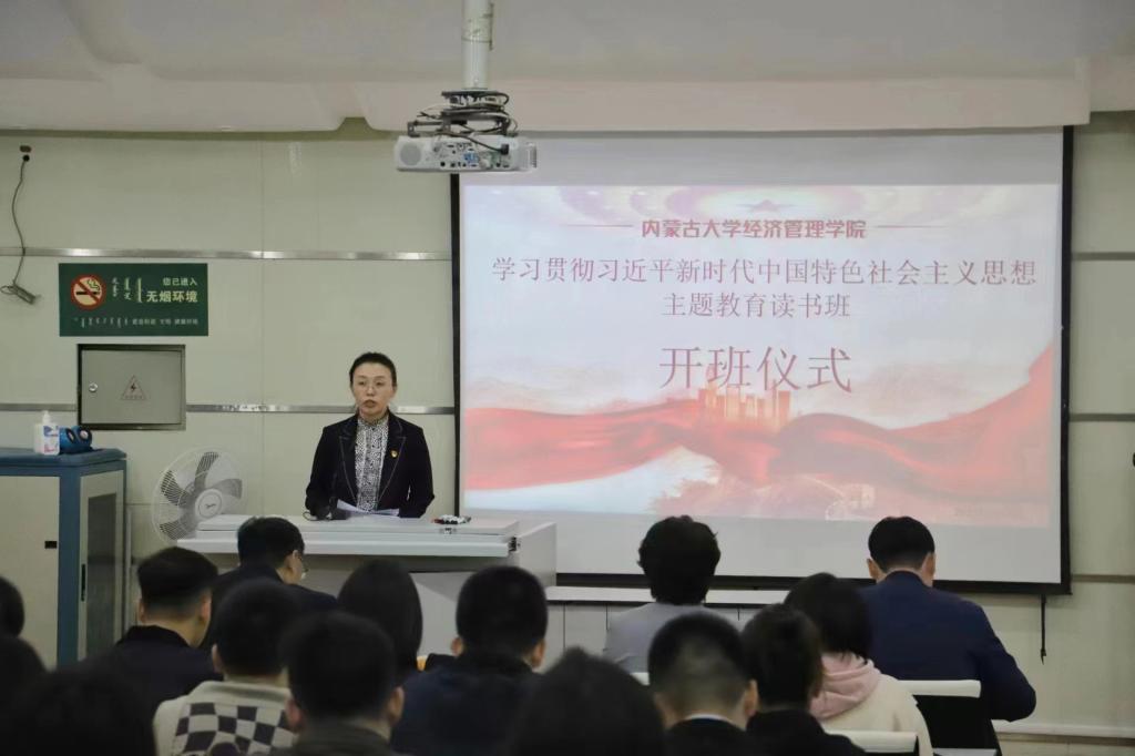 为扎实开展学习贯彻习近平新时代中国特色社会主义思想主题教育,落实学校党委关于学习贯彻习近平新时代中国特色社会主义思想主题教育工作会议精神,yl7703永利集团于近期组织开展学习贯彻习近平新时代中国特色社会主义思想主题教育读书班,并于5月4日16:30在经管楼208教室举办了开班仪式。开班仪式由学院副书记、副院长王锋正主持,学院党委书记李宏宇、学院院长杜凤莲、学院副院长薛继亮、学院副院长周瑜出席,学院党委委员、各支部书记、教职工党支部教师代表以及学生党支部代表参加了本次开班仪式。同时,内蒙古环投环保技术公司副总经理贾怀宇等15名公司党支部成员以参加读书班听党课的形式合作开展主题党日活动。