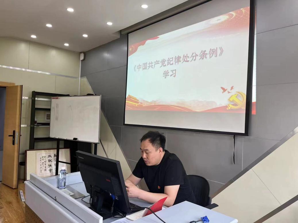 李宜洺同志从《条例》的内容框架、新旧版本的比较以及师德师风建设三个方面进行了讲解。李宜洺强调,支部将全面夯实纪律建设,为构建风清气正的校园环境打下坚实基础。要求全体党员在实际工作中严格遵循党规党纪,以身作则,共同推动教育教学等各项事业持续健康发展。与会党员们积极参与讨论,分享了自己的学习感悟和见解,表达了进一步强化党性修养、发挥模范作用的信心和决心。