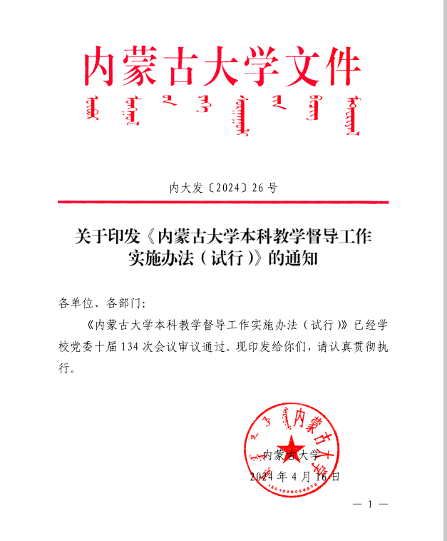 关于印发《永利官网本科教学督导工作实施办法(试行)》的通知