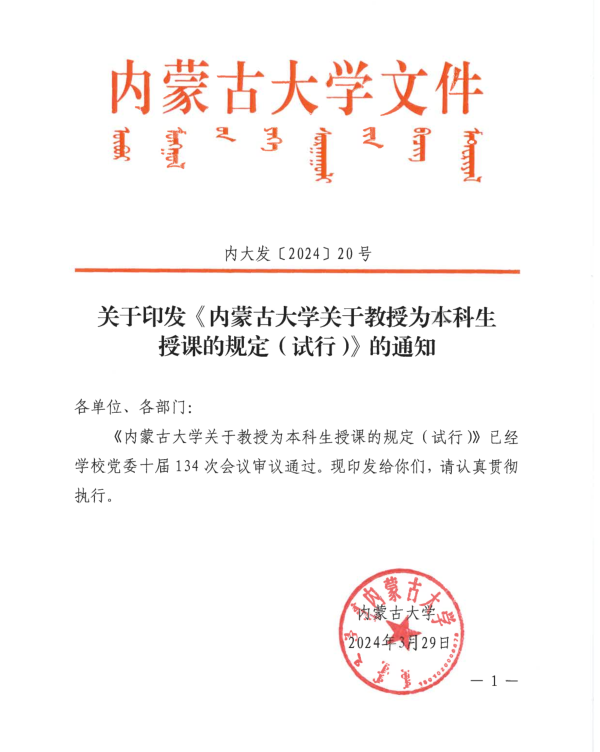 关于印发《永利官网关于教授为本科生授课的规定(试行)》的通知