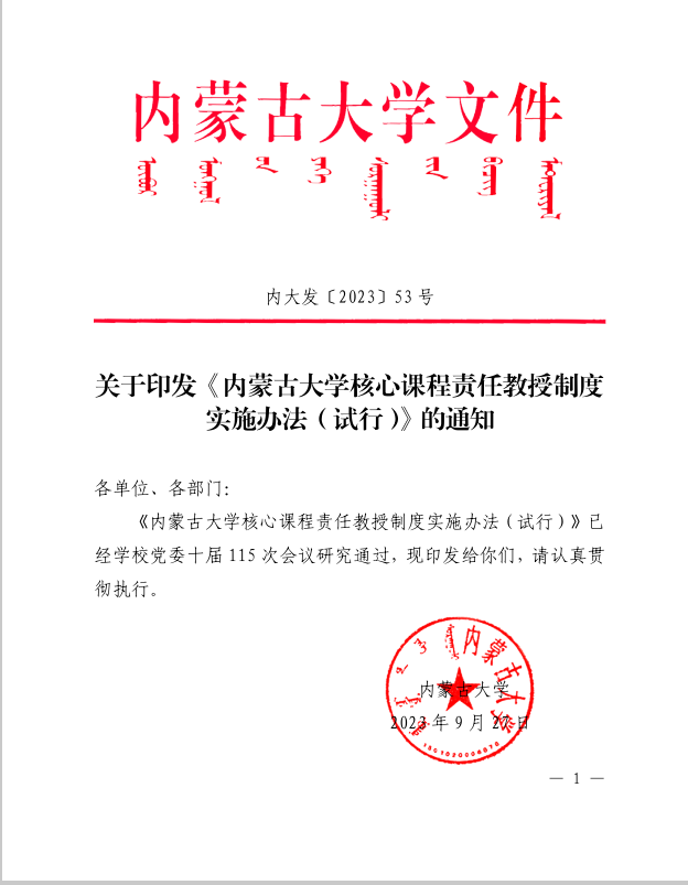 关于印发《永利官网核心课程责任教授制度实施办法(试行)》的通知
