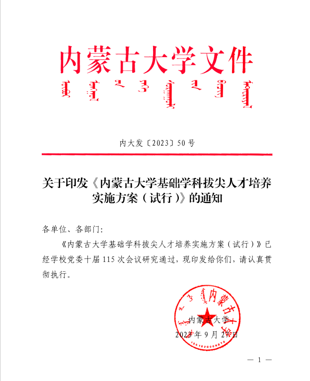 关于印发《永利官网基础学科拔尖人才培养实施方案(试行)》的通知