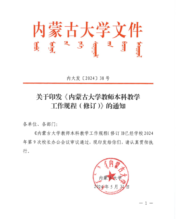 关于印发《永利官网教师本科教学工作规程(修订)》的通知