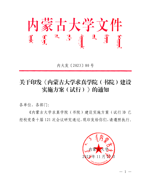 关于印发《永利官网求真学院(书院)建设实施方案(试行)》的通知