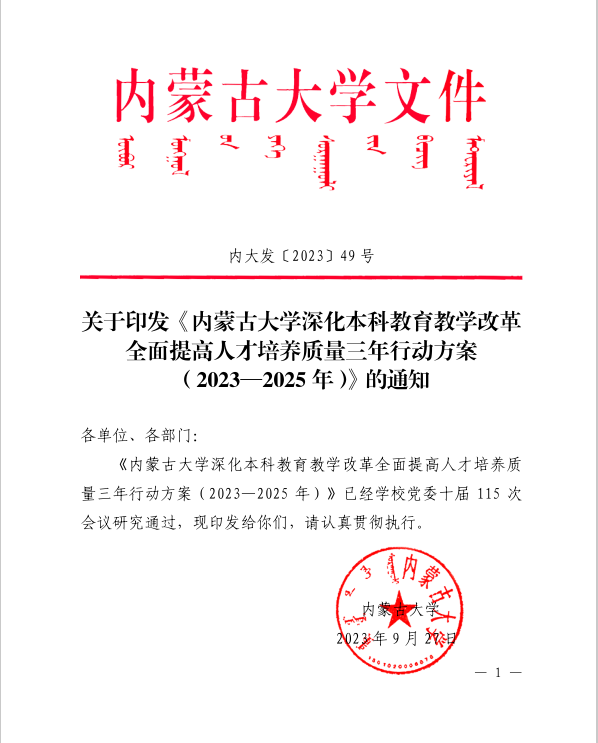 关于印发《永利官网深化本科教育教学改革全面提高人才培养质量三年行动方案(2023—2025年)》的通知