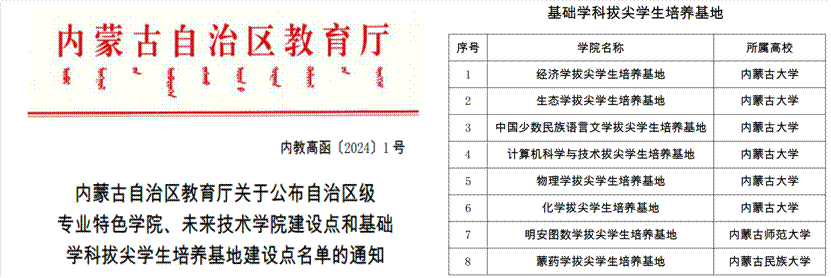 基于扎实的本科人才培养建设基础,学院于2024年1月获批内蒙古自治区经济学拔尖学生培养基地。学院将全员全过程全方位深入开展教学改革研究,总结适合不同拔尖学生发展的多元化培养举措和路径,解决阻碍拔尖学生培养的主要障碍和瓶颈,不断提升人才培养质量。同时,学院将以经济学拔尖学生培养为示范,积极完善人才培养模式和路径,不断提升育人能效,助力学校双一流建设,助推新质生产力发展。