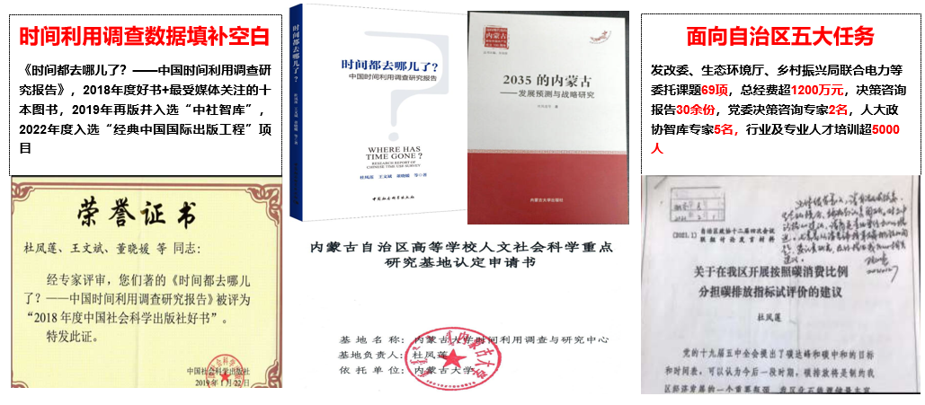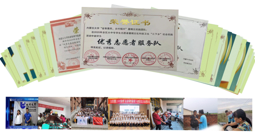 依托中国时间利用调查与研究中心,建成国内唯一的中国家庭时间利用调查研究平台,加入中国高校数据联盟;先后与中国建设银行内蒙古分行、西南财经大学中国家庭金融调查中心合作开展“金智惠民 乡村振兴”“中国家庭金融调查”等暑期“三下乡”社会实践品牌活动,连续多年在“金智惠民 乡村振兴”、“中国金融-中国时间利用国情观察”等调查活动中被内蒙古党委宣传部、教育厅等5部门联合授予“优秀志愿者服务队”荣誉称号。参与实践调查的学生达1200人次,实现本科生全覆盖。“金智惠民 乡村振兴”大学生社会实践育人项目获批2023年度内蒙古自治区高校思想政治工作精品项目。