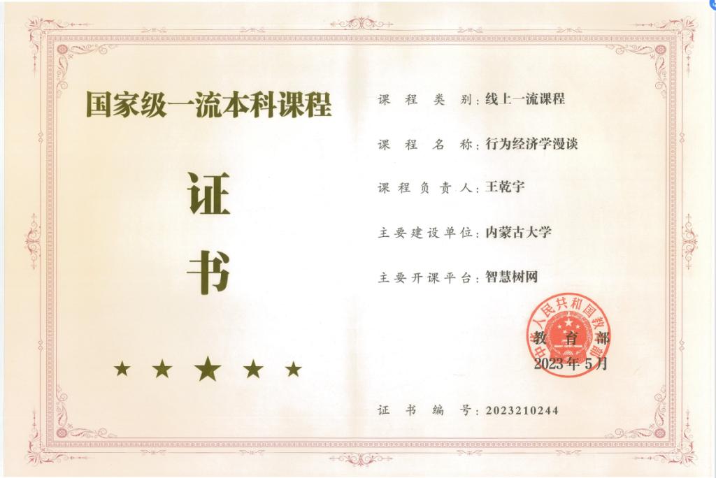 经过改革与实践,取得显著成效。现已建成微观经济学、行为经济学、管理会计学等7门自治区级线下、线上、线上线下混合式、虚拟仿真实验教学等一流课程,其中《行为经济学》《管理会计学》2门课程获国家级一流本科课程;微观经济学、宏观经济学等55门基础核心课程改革获学校立项,实现课程思政全覆盖;获批教育部和自治区教育厅教学研究项目8项;拥有自治区高等学校教学名师1人,自治区优秀教师1人,获批自治区级及以上教学科研团队7支;获自治区级教学成果奖二等奖1项。