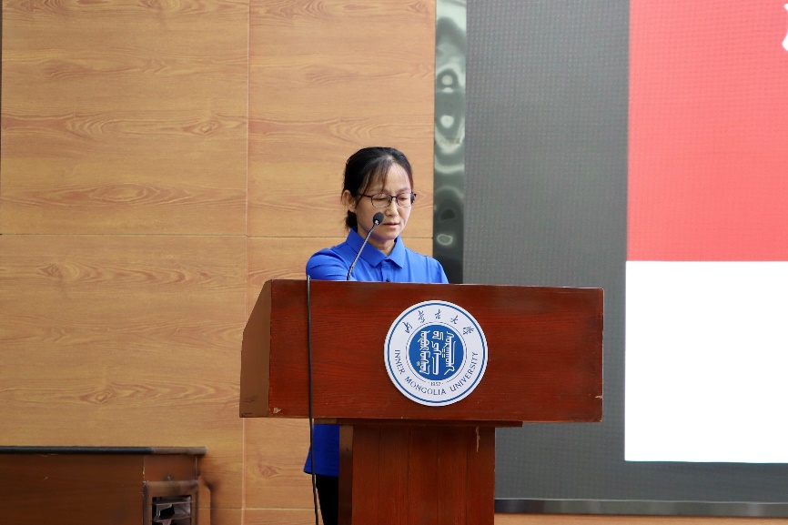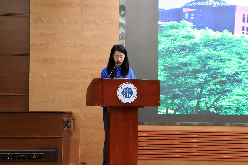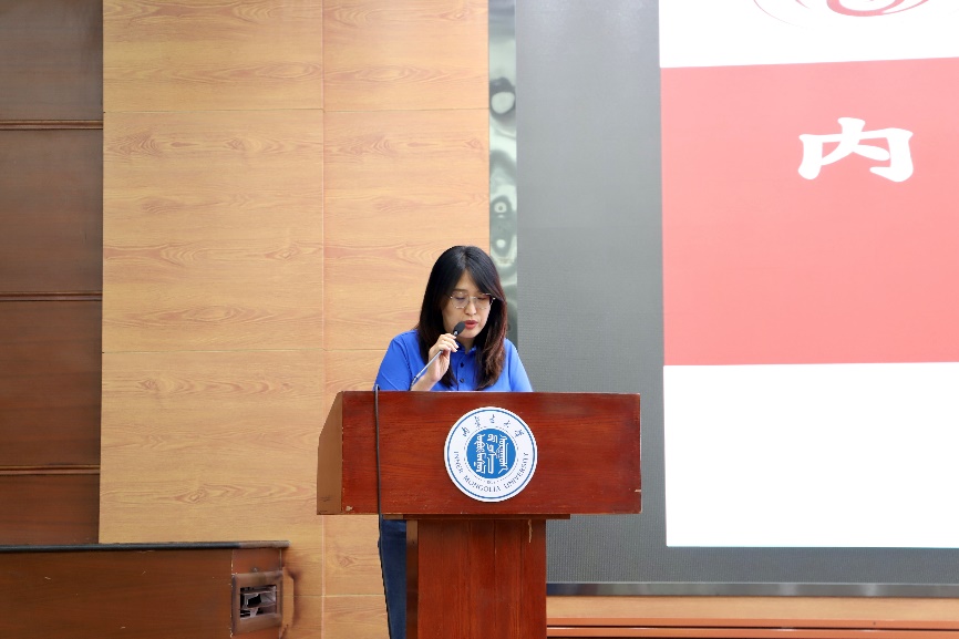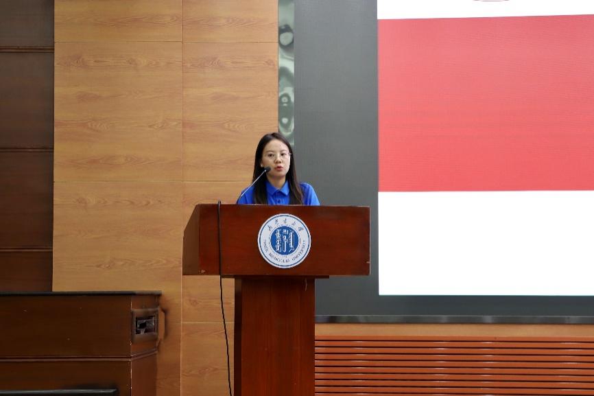 本科生辅导员周毅嵘老师就学生日常管理等方面进行了详细介绍,她分别从学生宿舍卫生安全、意识形态、请销假流程、评优工作等方面开展讲解。