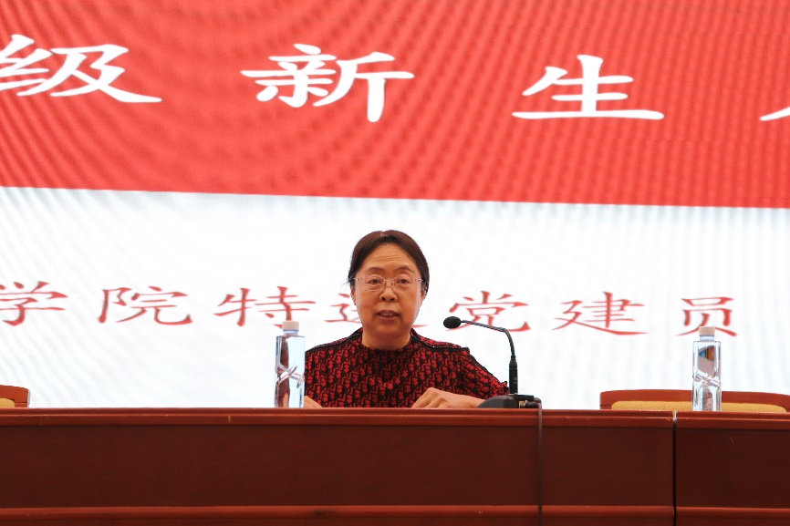 学院特邀党建组织员赵爱萍老师对学院发展党员的流程和所需条件进行介绍与说明,赵老师指出大学生应注重提高自身的政治理论水平和政治觉悟,积极向党组织靠拢,她希望2024级所有新同学都能够在认真学好专业知识的同时,不断提高综合素质,努力成为德智体美劳全面发展的有用人才。
