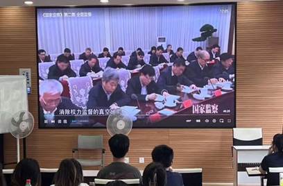 之后,支部开展了集中警示教育,全体党员观看了《全面监督》(《国家监察》第二集)。视频通过真实案例展现了党内监督、国家监察与群众监督结合的立体监督体系,揭示了“权力运行到哪里,监督就跟进到哪里”的深刻内涵。观看结束后,党员们围绕“监督与自律的关系”展开集中研讨,一致认为:全面监督既是约束,更是保护,党员应主动接受监督,以自我革命精神拧紧纪律螺丝,做到心有所畏、行有所止。